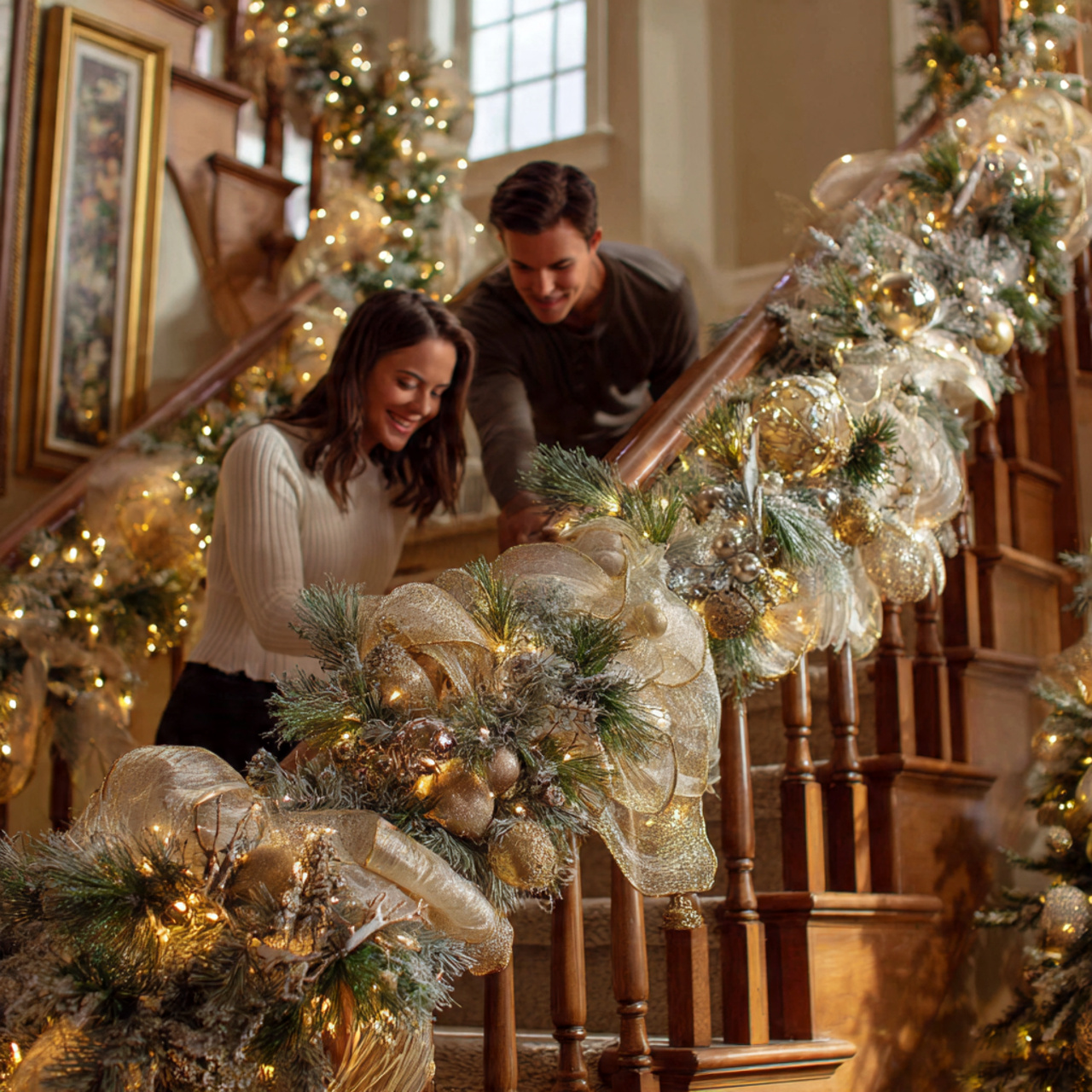 A staircase banister offers a spectacular focal point for holiday cheer, demanding a dramatic display. Start with a very thick, high-quality evergreen garland, ensuring it has enough volume to look luxurious. Wrap the garland loosely around the banister, securing it at regular intervals with floral wire.