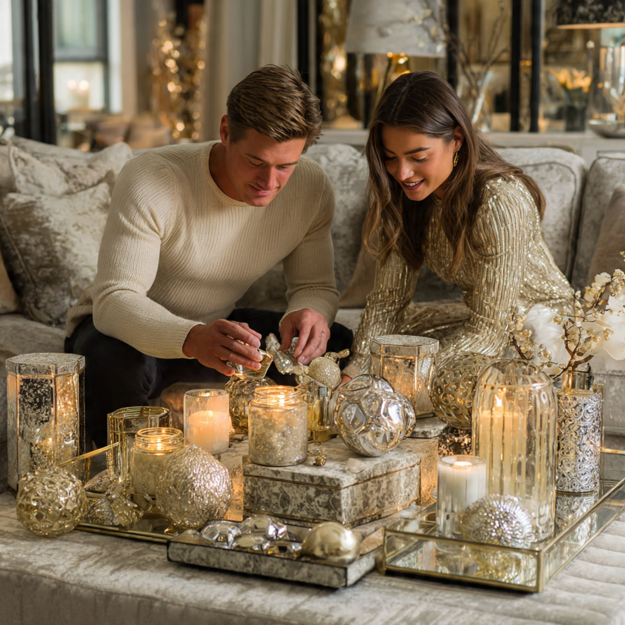 Beyond ornaments on the tree, group various sizes of mercury glass votives, candlesticks, and small decorative bowls on side tables or above kitchen cabinets. The secret to this display is layering; place them on a length of velvet or an antique lace runner to enhance the vintage feel. This style of Christmas Decorations is particularly effective when mixed with aged brass accents.