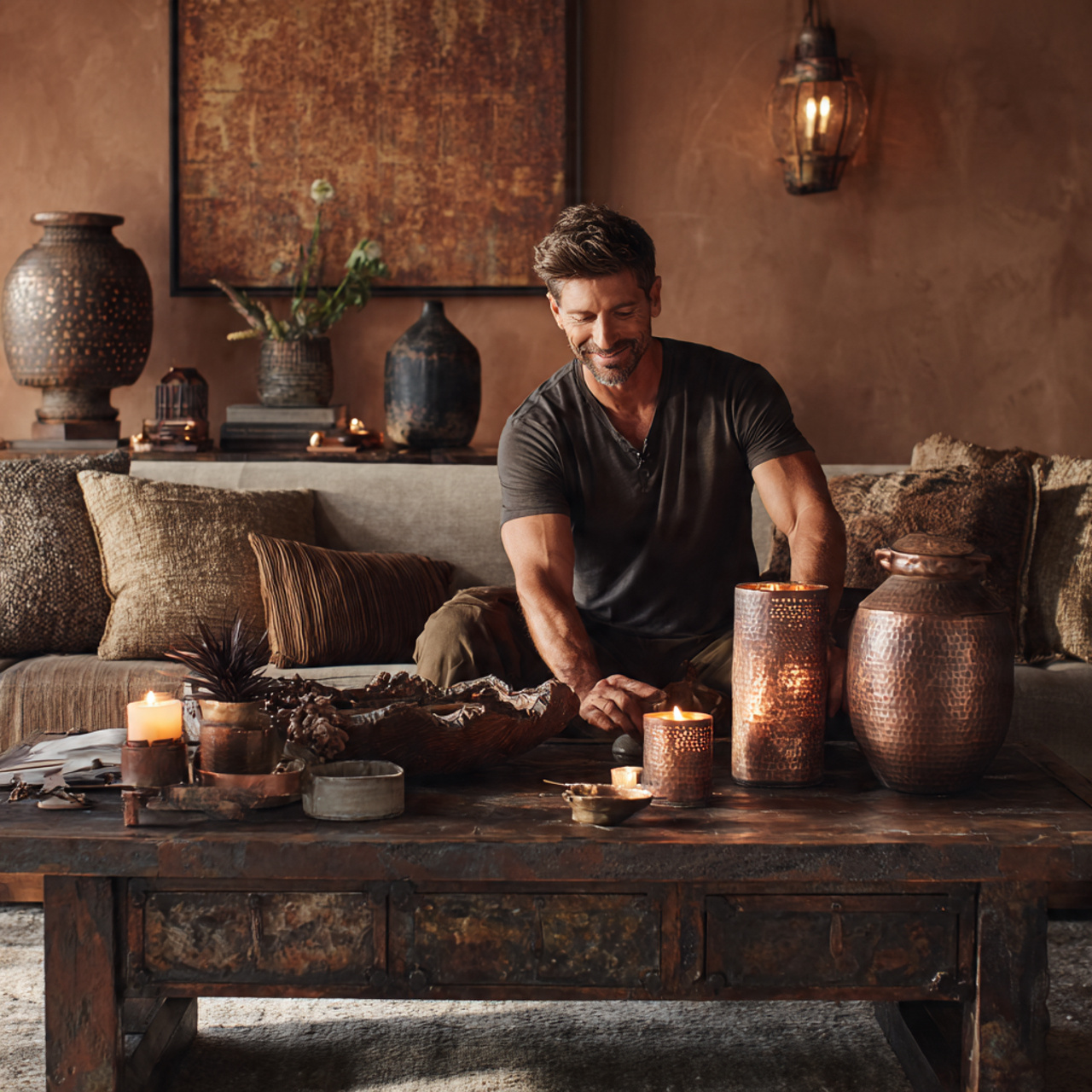 Oxidized metal accents, such as iron sconces or copper trays, introduce the beauty of chemical transformation into the home. The green patina of copper or the darkened matte finish of aged iron suggests a life lived in the presence of air and moisture over many years.